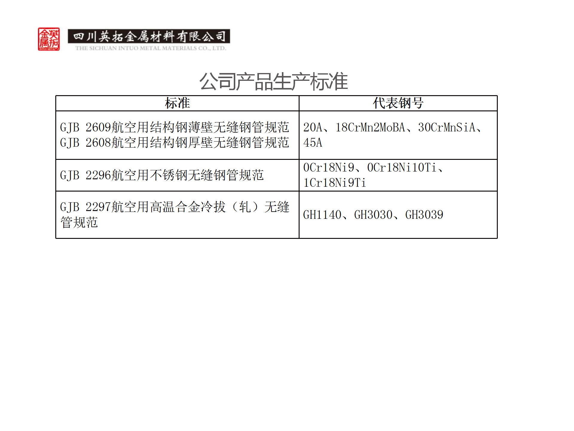 公司產(chǎn)品生產標準